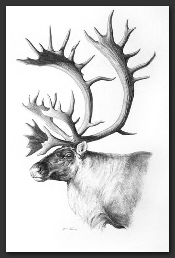 Caribou drawn in 1982 for Times Mirror and Outdoor Life.
