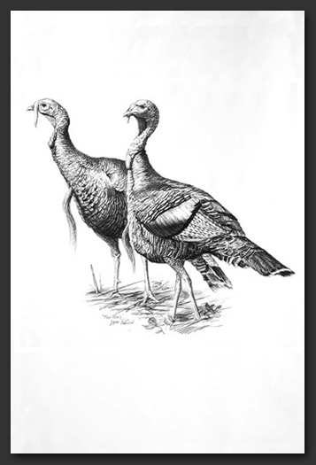 Wild Turkeys drawn in 1982 for Times Mirror and Outdoor Life.